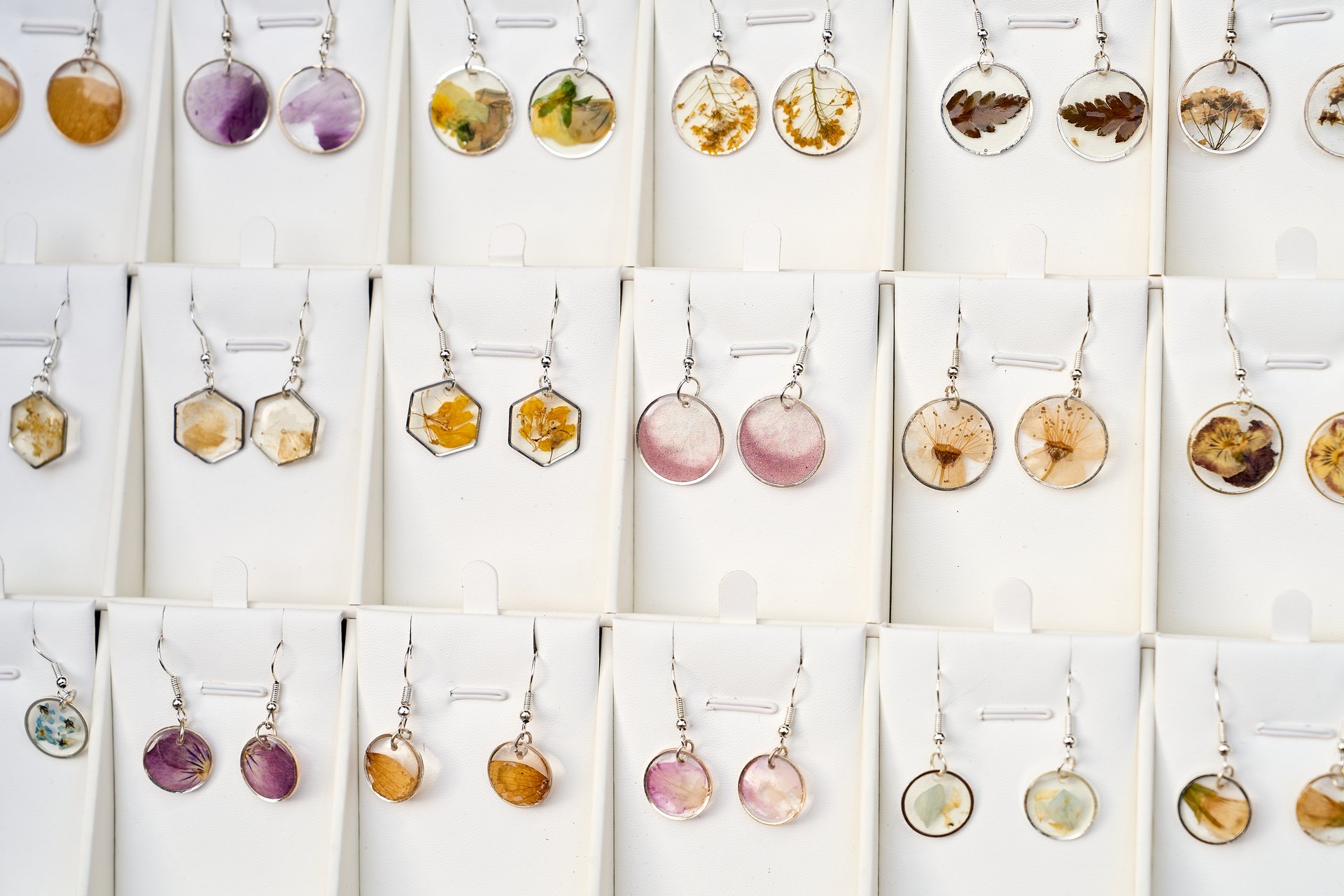 7 / 45 Wróć do artykułu Unikatowe rękodzieło na Jarmarku we Wrocławiu Unikatowe rękodzieło na Jarmarku we Wrocławiu Oleksandr Poliakovsky/Wroclaw.pl Przejdź do poprzedniego zdjęcia. Poprzednie Następne Przejdź do kolejnego zdjęcia. Kolczyki z zatopionymi kwiatami