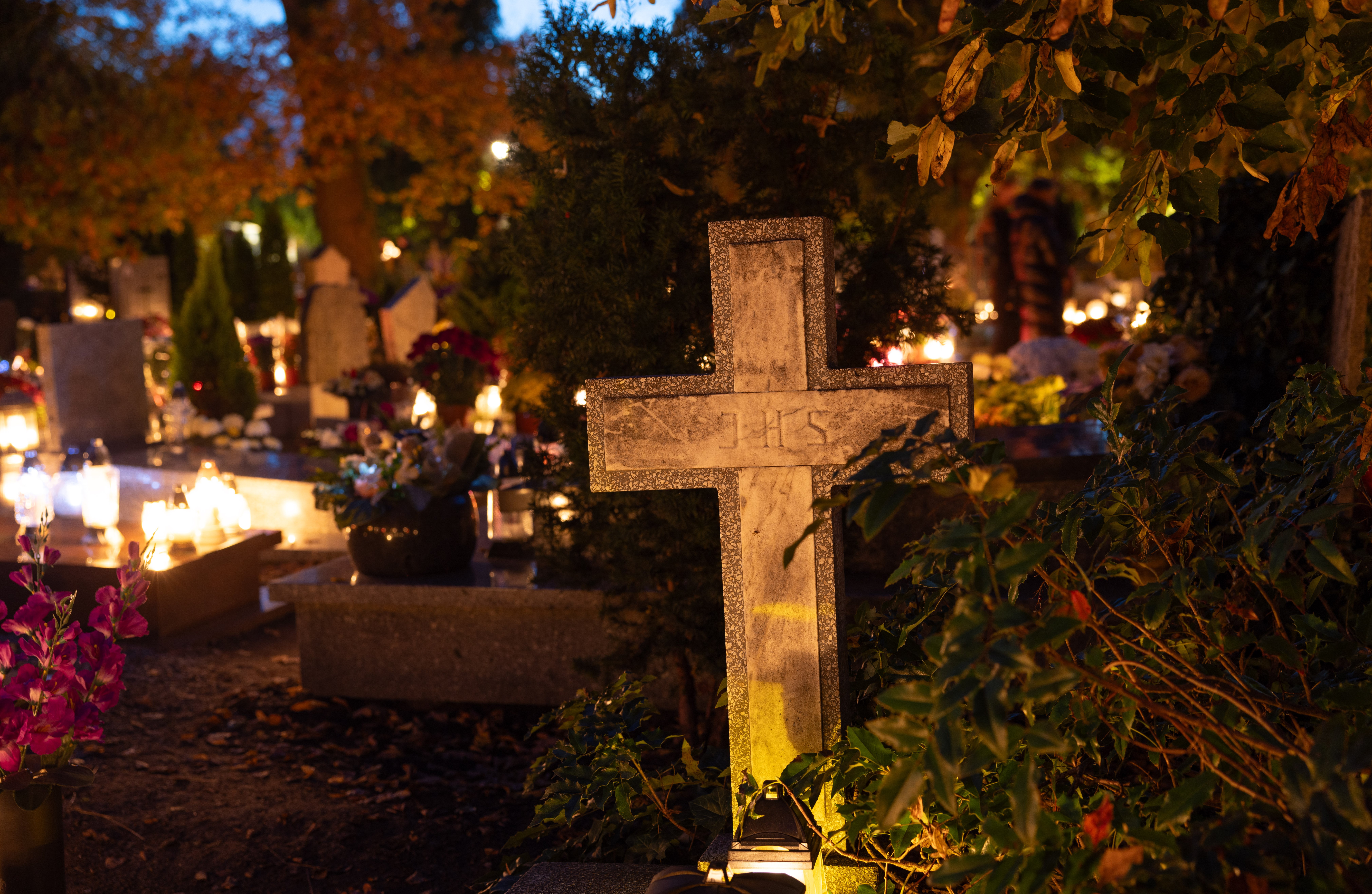 Cmentarz na Sępolnie po zmroku - spokój i zaduma