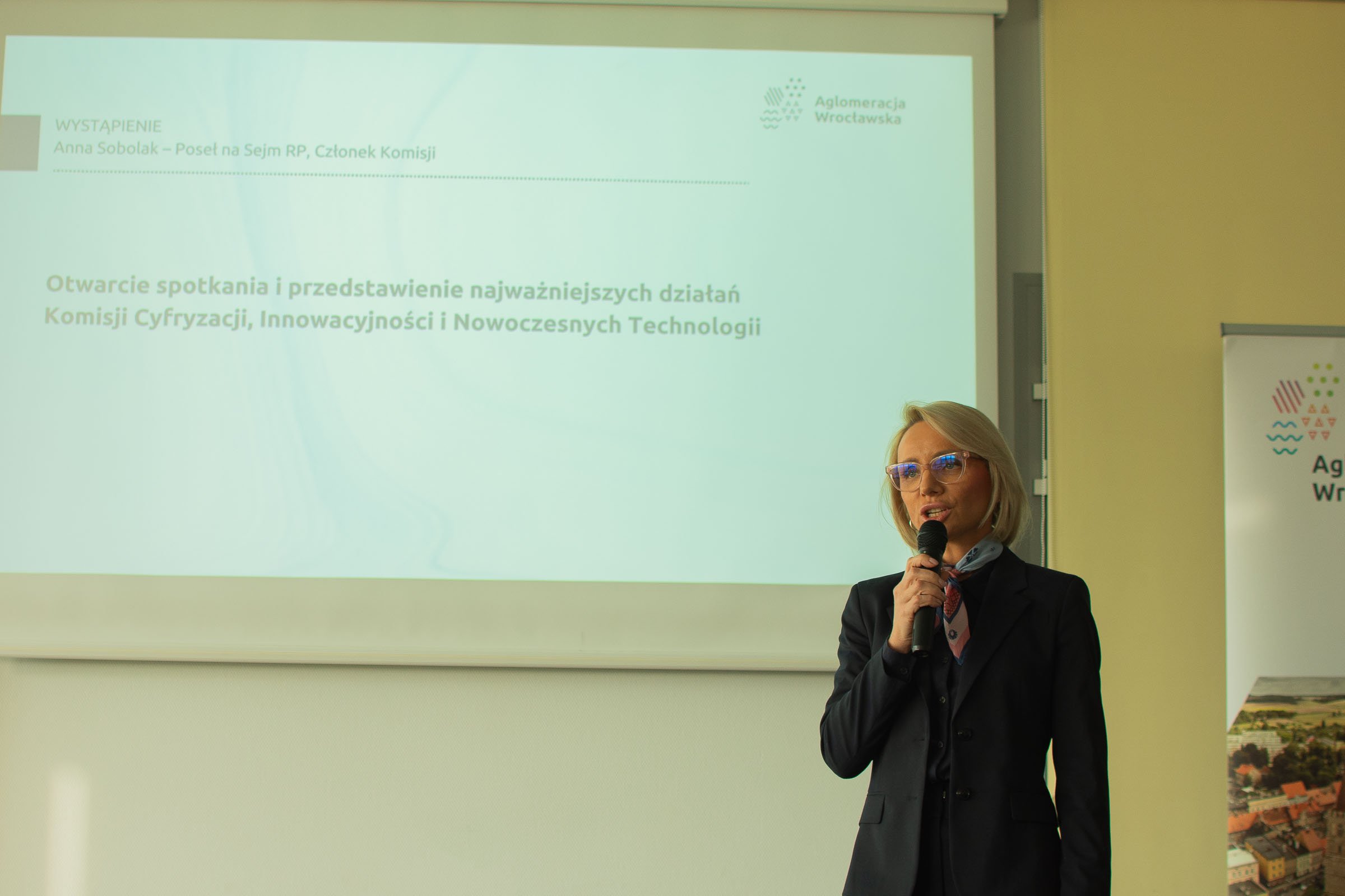 Spotkanie wiceministra cyfryzacji Dariusza Standerskiego z samorządowcami Aglomeracji Wrocławskiej. Posłanka Anna Sobolak