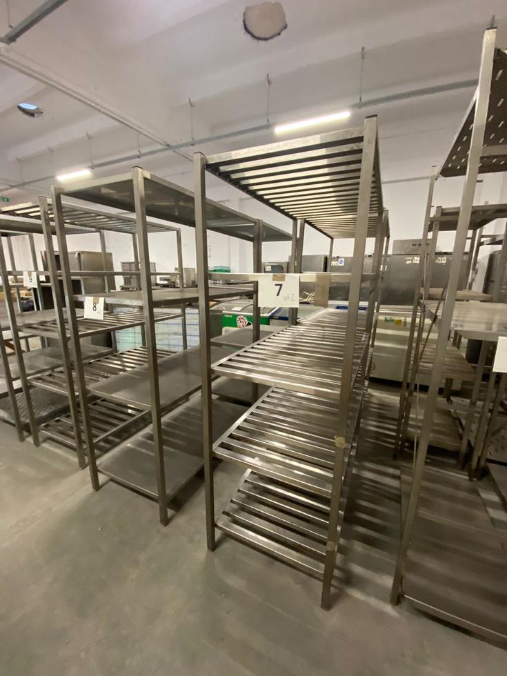 przedmioty ze starej Piwnicy Świdnickiej na licytacji, na zdjęciu regał metalowy, stal nierdzewna, cena wywoławcza 150 zł