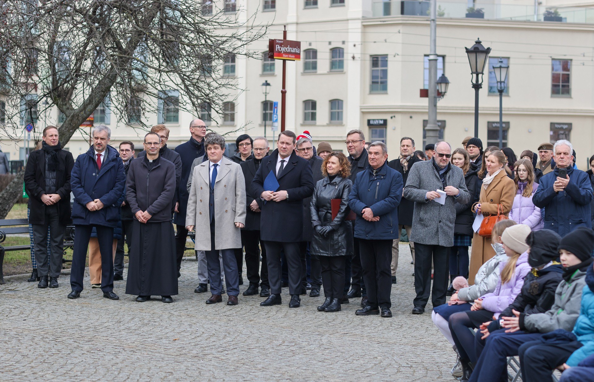 12 / 22 Wróć do artykułu Nowe miejsce na mapie Wrocławia: Skwer Pojednania Nowe miejsce na mapie Wrocławia: Skwer Pojednania Fot. Tomasz Hołod Przejdź do poprzedniego zdjęcia. Poprzednie Następne Przejdź do kolejnego zdjęcia. Uroczystość odsłonięcia tablicy z nazwą Skwer Pojednania