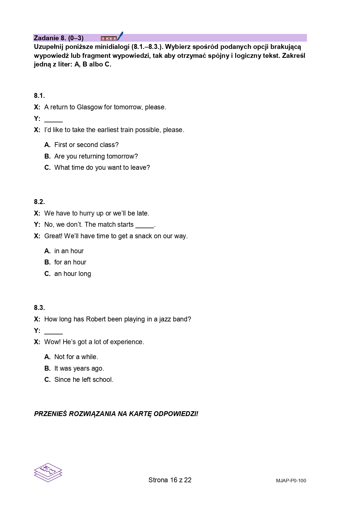 16 / 23 Wróć do artykułu Próbna matura 2026 z języka angielskiego. Arkusz CKE Próbna matura 2026 z języka angielskiego. Arkusz CKE materiały CKE Przejdź do poprzedniego zdjęcia. Poprzednie Następne Przejdź do kolejnego zdjęcia. Arkusz próbnej matury z języka angielskiego 2026
