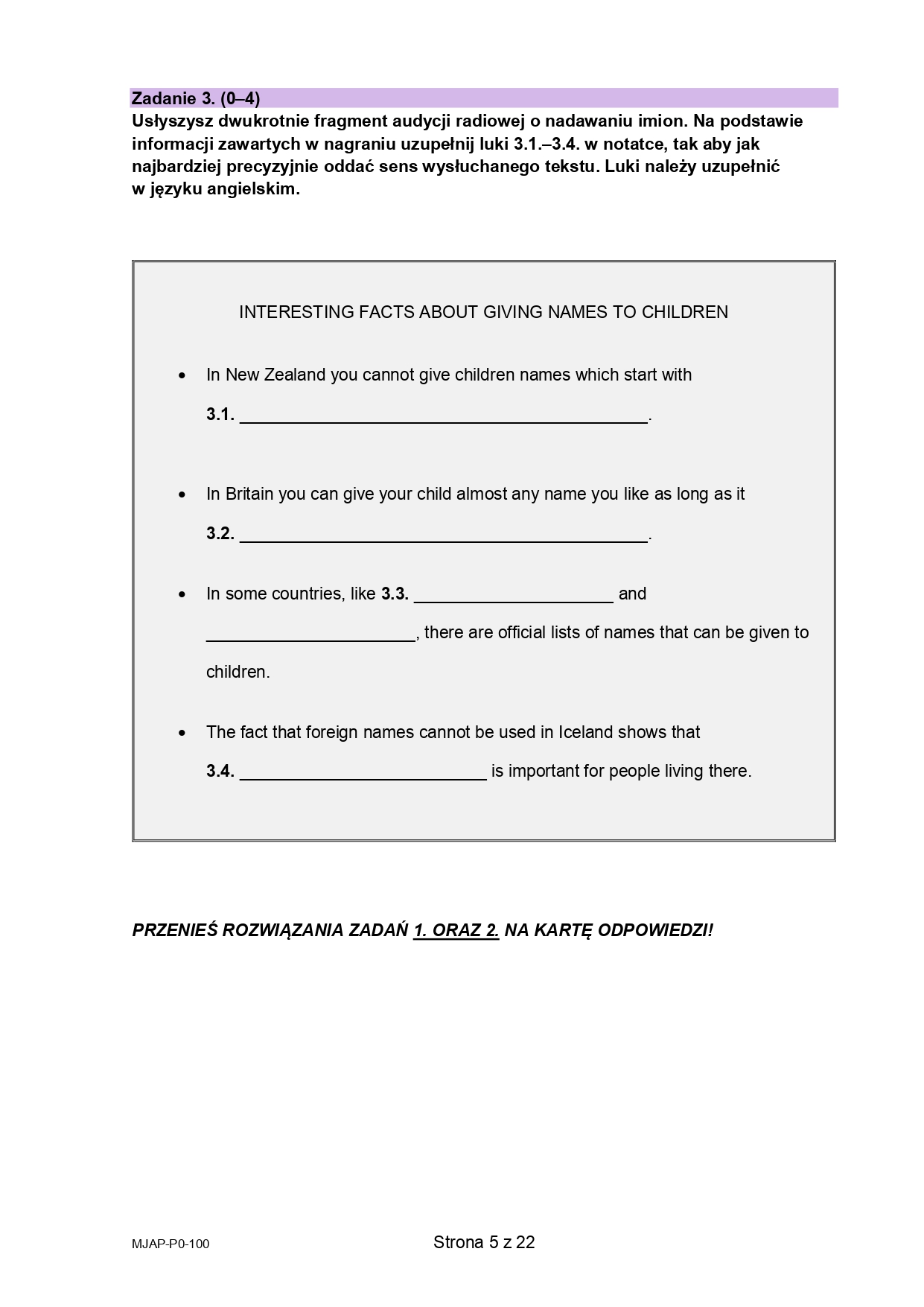 4 / 23 Wróć do artykułu Próbna matura 2026 z języka angielskiego. Arkusz CKE Próbna matura 2026 z języka angielskiego. Arkusz CKE materiały CKE Przejdź do poprzedniego zdjęcia. Poprzednie Następne Przejdź do kolejnego zdjęcia. Arkusz próbnej matury z języka angielskiego 2026