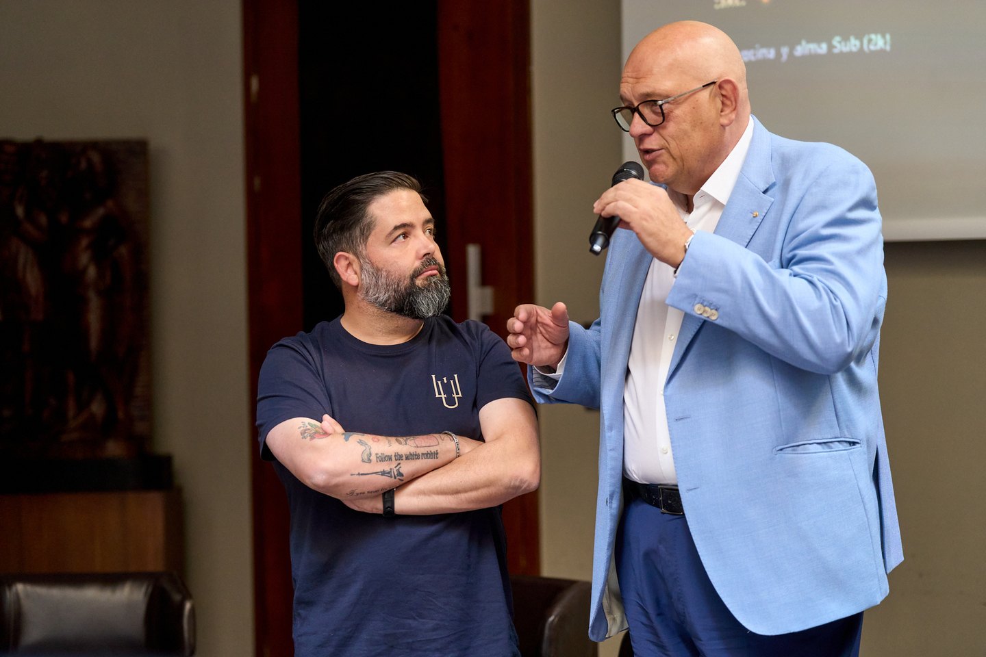 Juan Luis Fernandez i Maciej Dobrzyniecki podczas spotkania wrocławskiej branży gastronomicznej