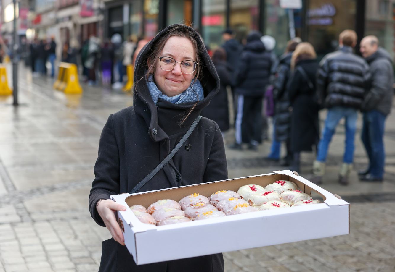 14 / 22 Wróć do artykułu Tłusty Czwartek we Wrocławiu. Długie kolejki pod cukierniami Tłusty Czwartek we Wrocławiu. Długie kolejki pod cukierniami fot. Tomasz Hołod Przejdź do poprzedniego zdjęcia. Poprzednie Następne Przejdź do kolejnego zdjęcia. Mieszkańcy z pączkami - 12.02.2026