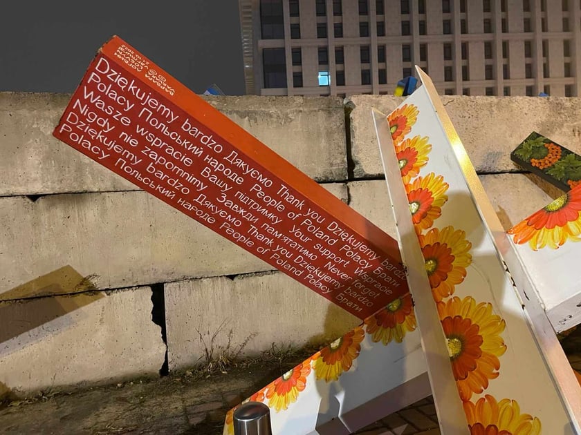 7 / 8 Wróć do artykułu Trzy lata po wybuchu wojny w Ukrainie Trzy lata po wybuchu wojny w Ukrainie Piotr Kaszuwara Przejdź do poprzedniego zdjęcia. Poprzednie Następne Przejdź do kolejnego zdjęcia. Belki z wypisanymi podziękowaniami dla Polaków, porzucone pd murem.