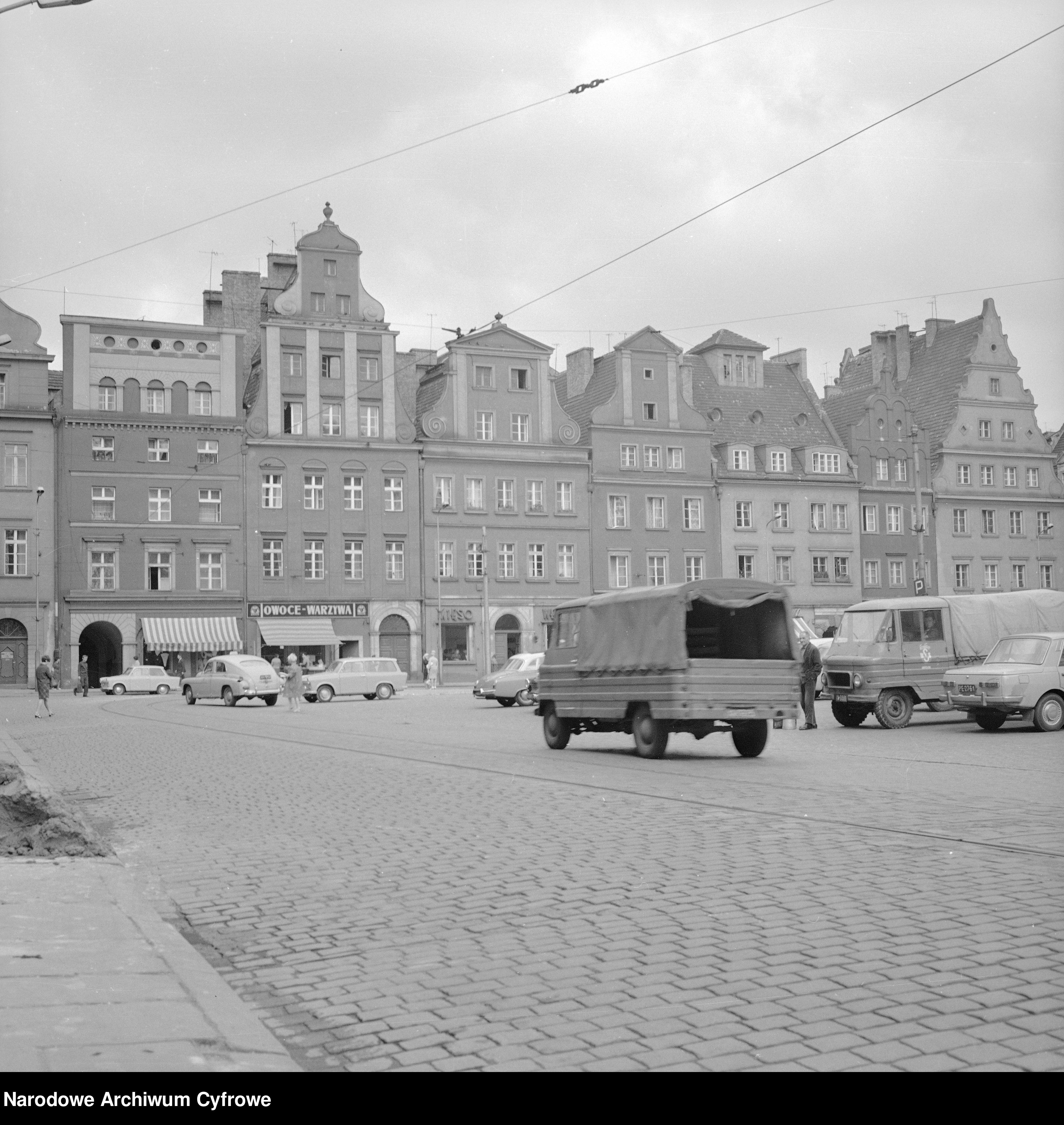 18 / 34 Wróć do artykułu Tak wyglądało centrum Wrocławia w latach 60. Tak wyglądało centrum Wrocławia w latach 60. Narodowe Archiwum Cyfrowe Przejdź do poprzedniego zdjęcia. Poprzednie Następne Przejdź do kolejnego zdjęcia. Wrocław w latach 60. XX w. Kamienice przy placu Solnym. Widoczne m.in. dwa samochody Żuk