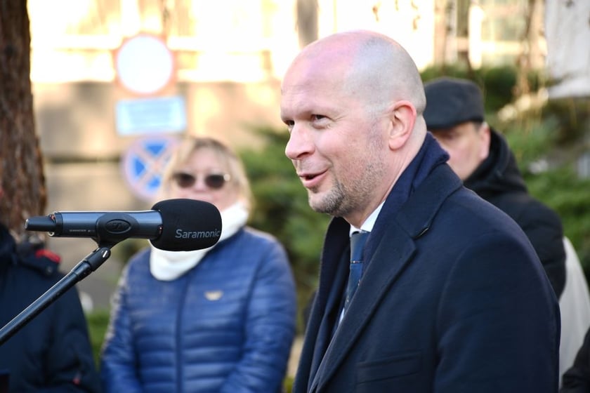 Prezydent Jakub Mazur przemawia w imieniu Jacka Sutryka