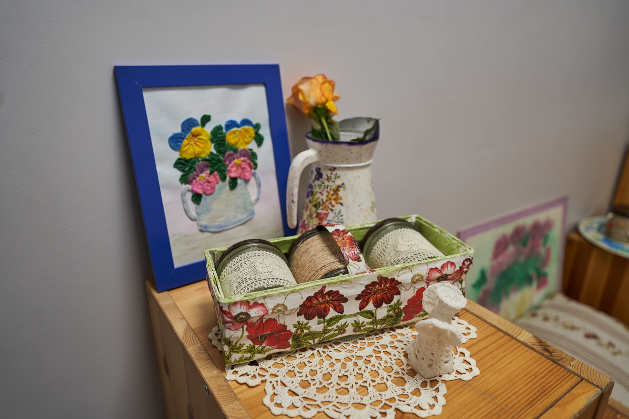 10 / 31 Wróć do artykułu Schronisko dla bezdomnych kobiet ma nową siedzibę [OTWARCIE] Schronisko dla bezdomnych kobiet ma nową siedzibę [OTWARCIE] Oleksandr Poliakovsky Przejdź do poprzedniego zdjęcia. Poprzednie Następne Przejdź do kolejnego zdjęcia. Rękodzieło wykonane przez mieszkanki schroniska