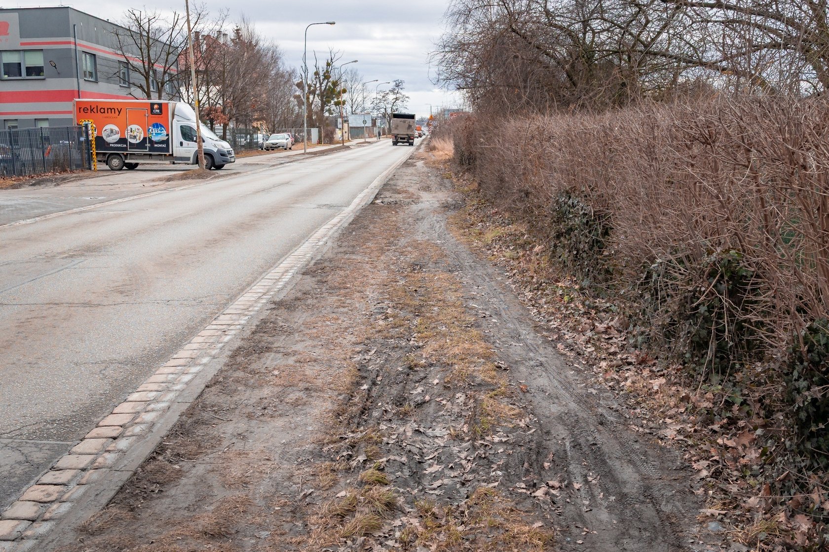 5 / 8 Wróć do artykułu Na Awicenny powstanie droga rowerowa Na Awicenny powstanie droga rowerowa Fot. Bartosz Mokrzycki Przejdź do poprzedniego zdjęcia. Poprzednie Następne Przejdź do kolejnego zdjęcia. Ulica Awicenny, odcinek od torów kolejowych do Stanisławowskiej. Tu drogę rowerową wybuduje deweloper