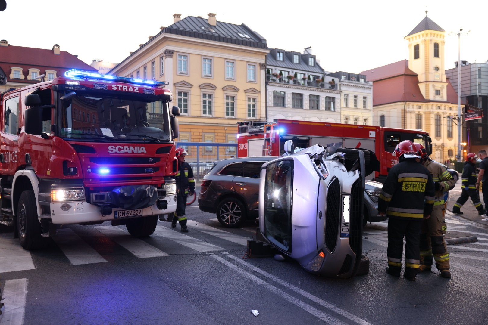Groźny wypadek w centrum Wrocławia. Samochód leżał na boku. Co się stało?
