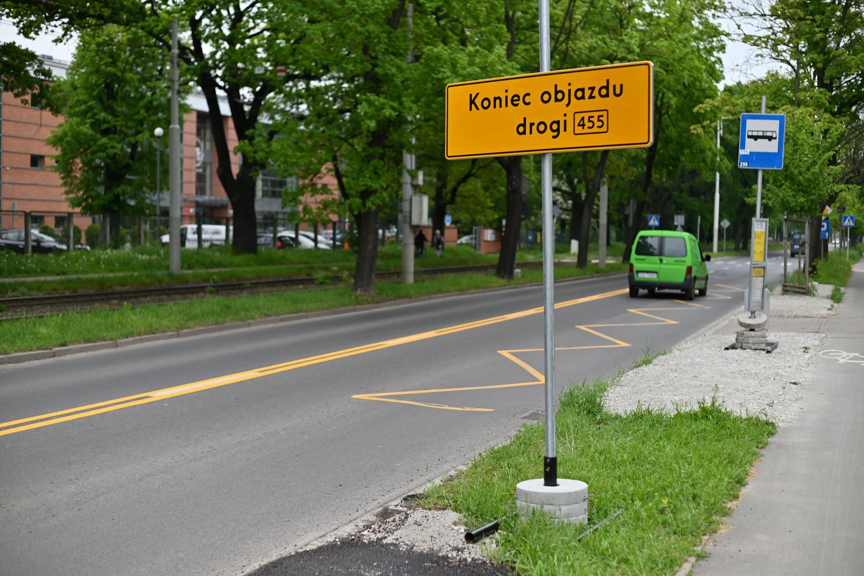 Wielka Wyspa, okolice godziny 15:00, wtorek 16 maja - ruch na trasie objazdu wprowadzonego z powodu zamknięcia skrzyżowania ul. Mickiewicza i Paderewskiego.