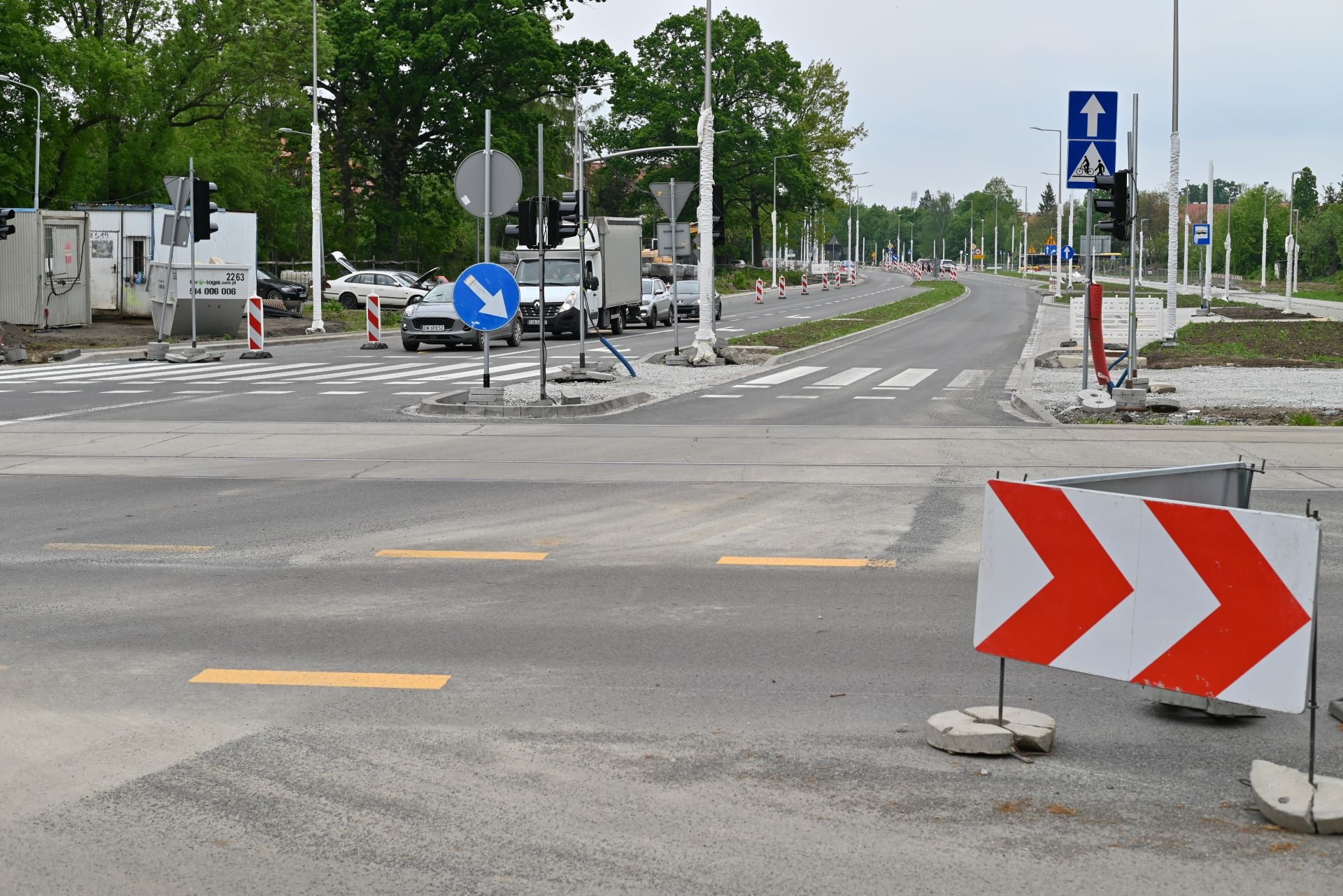 Wielka Wyspa, okolice godziny 15:00, wtorek 16 maja - ruch na trasie objazdu wprowadzonego z powodu zamknięcia skrzyżowania ul. Mickiewicza i Paderewskiego.