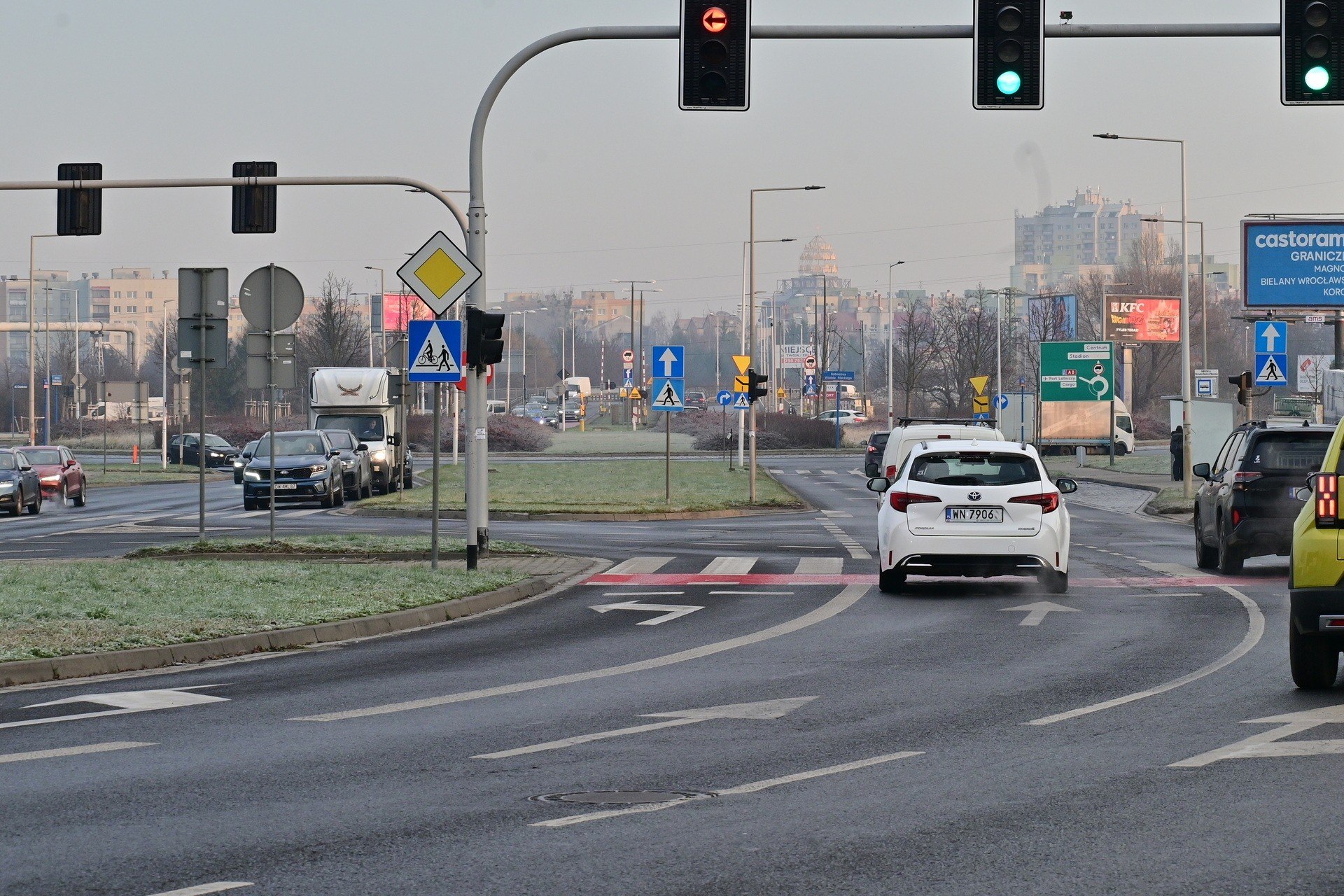 12 / 27 Wróć do artykułu Muchobór Wielki: pierwszy krok do buspasa na Mińskiej! Muchobór Wielki: pierwszy krok do buspasa na Mińskiej! Fot. Bartosz Chochołowski Przejdź do poprzedniego zdjęcia. Poprzednie Następne Przejdź do kolejnego zdjęcia. Przed rondem Pileckiego miejsce na buspas jest między jezdniami ulicy Mińskiej