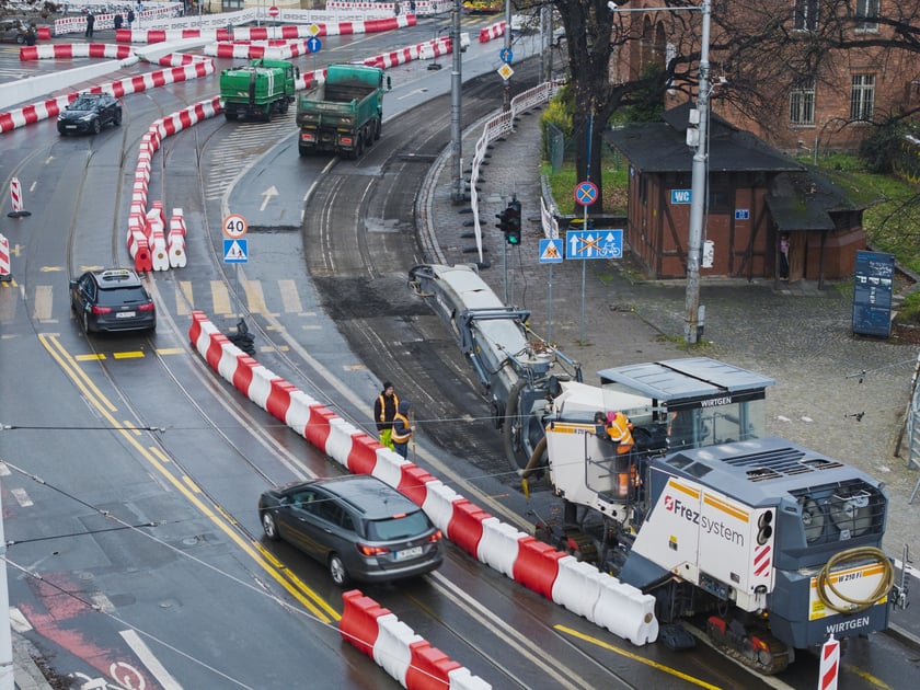 Prace przy przebudowie węzła Drobnera-Dubois. Zdjęcie z 1 grudnia 2025 r.