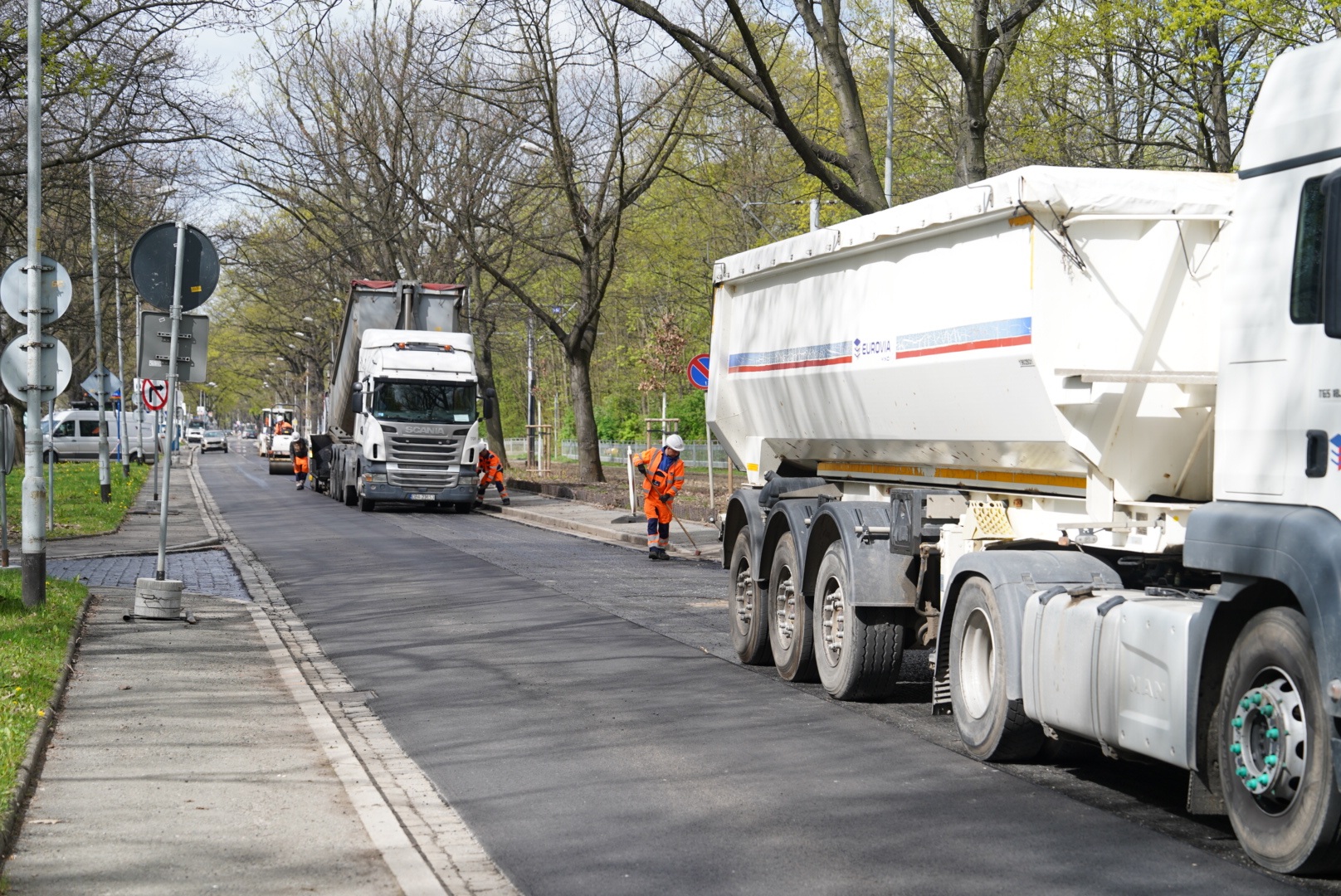 I etap prac na ul. Olszewskiego - układanie asfaltu na odcinku od skrzyżowania ze Spółdzielczą i Orłowskiego do krzyżówki z Gersona i Wojtkiewicza.