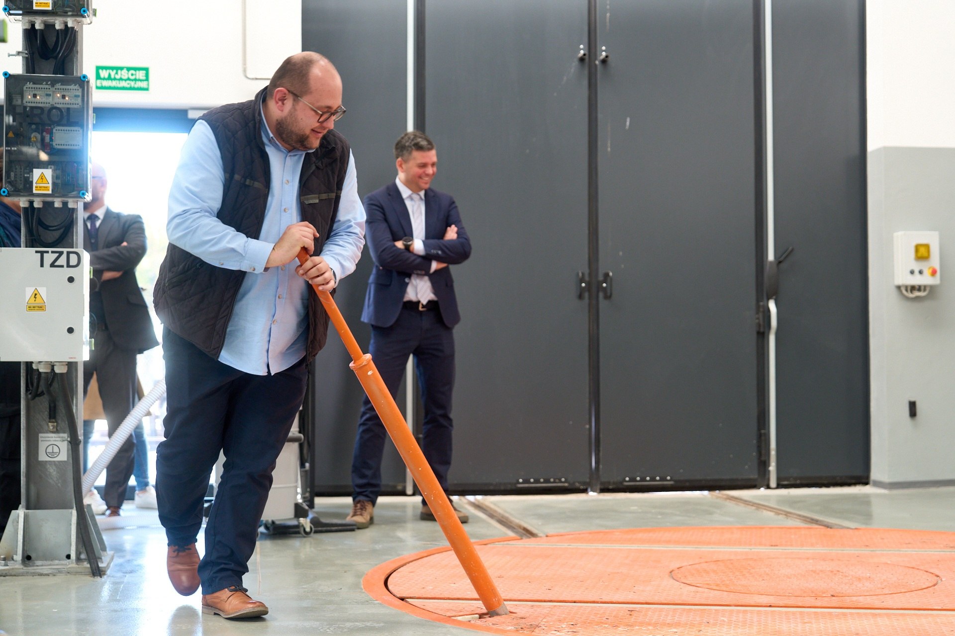 6 / 33 Wróć do artykułu Rozbudowa zajezdni tramwajowej zakończona Rozbudowa zajezdni tramwajowej zakończona Fot. Oleksandr Poliakovsky Przejdź do poprzedniego zdjęcia. Poprzednie Następne Przejdź do kolejnego zdjęcia. Kierownik zajezdni Borek Łukasz Mękalski prezentuje urządzenie do obracania wózków tramwajowych