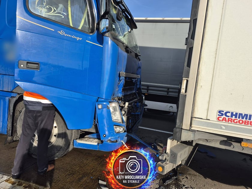Aż trzy ciężarówki blokują autostradę, 16 stycznia 2026 r.
