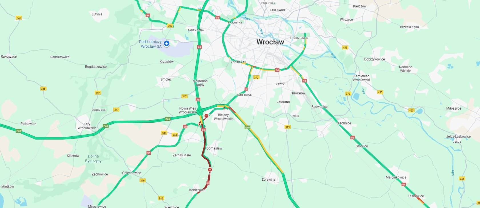 7 / 9 Wróć do artykułu Zablokowana ważna droga do Wrocławia. Potężny korek od Kobierzyc na "8" Zablokowana ważna droga do Wrocławia. Potężny korek od Kobierzyc na "8" google maps Przejdź do poprzedniego zdjęcia. Poprzednie Następne Przejdź do kolejnego zdjęcia. Na czerwono korek na DK8 Kobierzyce - Wrocław